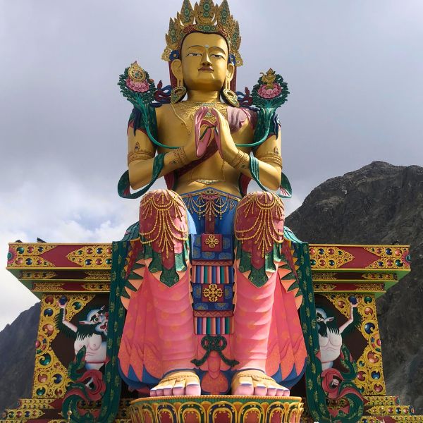 Visite du monastère de Diskit, perché sur un promontoire rocheux, avec sa statue monumentale de Maitreya tournée vers la vallée