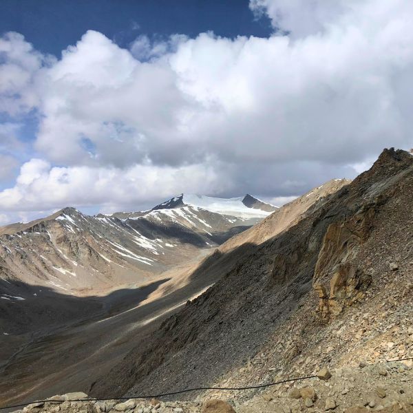 La route traverse l’un des paysages les plus spectaculaires du Ladakh et franchit le col de Khardung La, l’un des plus hauts cols carrossables du monde, à 5359 mètres d’altitude